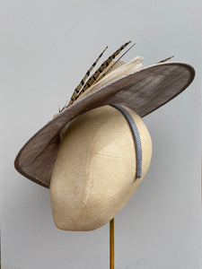 This hat is classic, and striking. It has pure elegance. Very lightweight and plaed on a hairband, this hat is the one.
